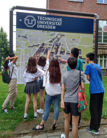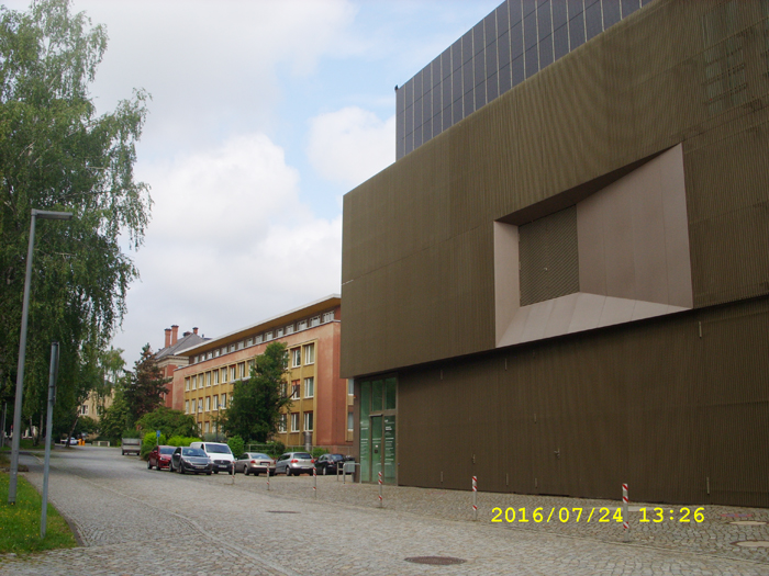我们知道,国外的大学是没有围墙的,德累斯顿工业大学也是如此,该大学的所有建筑分散在德累斯顿的各个角落。相对于见惯了国内围墙圈起来的大学来说,孩子们是难以想象的。Yanan老师告诉我们:德累斯顿工业大学所有的建筑上都没有像国内那种夺目的标牌,只有简单的几个德文字母说明该房屋的功能,有的建筑甚至什么标记也没有。难以分辨这是学校建筑,还是城市行政办公楼或是居民住房,学校与城市浑然一体。这种没有围墙的大学,才是真正的大学,它有一定的蕴含:大学与城市融为一体,让学生生活和融入在城市和社区之中,感受和共建城市文明,领悟和实践社会责任,我想这与大学开放兼容教育理念相符。