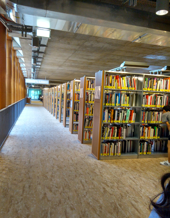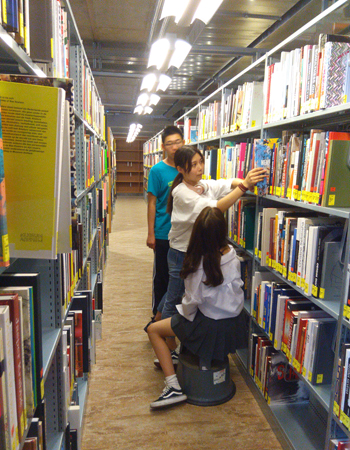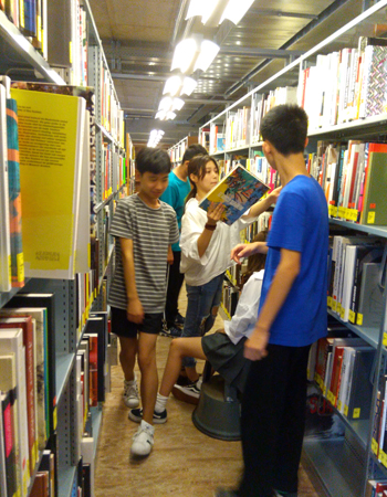 走进图书馆,首先Yanan老师在电脑上演示,教会孩子们如何检索图书,找到自己所需材料。随后,我们走进图书馆一楼,环顾四周,抬头能看到裸露的水泥屋顶,就像国内大型超市的屋顶,上面还布着各种管道,一些不起眼的不需要的墙面都未加装饰,让人感受到一种原始的深厚的质朴。地面是大理石装饰,馆内干净整洁,优雅舒适,每一块地板都被擦得光亮亮的,每一排书架都像卫兵列队一样整齐,每一张书桌都高矮适度,同一区域桌椅款式一致协调,真是一个名副其实的学术殿堂。