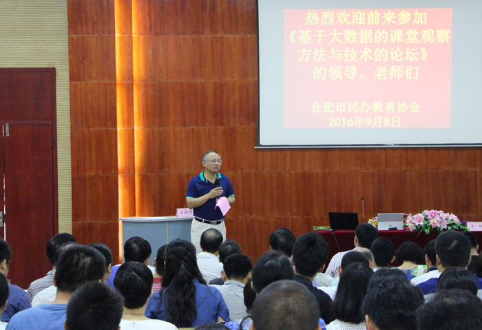 为了切实提高教师课堂水平,帮助教师找到教学中存在的不足,合肥市民办教育协会邀请了首都师范大学教授王陆女士,于2016年9月8日来合肥世界外国语学校开展了《基于大数据的课堂观察方法与技术》论坛活动。合肥市教育局王勇副局长、合肥市民办教育协会朱志明会长及全市校长、教学副校长、教研室主任等300多人出席本次活动。