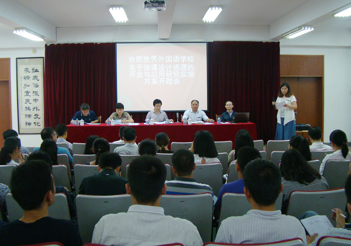 2016年9月23日,我校隆重召开《关于微课设计资源的开发与应用研究》的课题研究开题报告会。市教研主任田钰主任、李卫文主任莅临指导,合肥世界外国语学校邵忠德校长,督导室张发东主任,以及学校各学部的主任及教研组长参会。