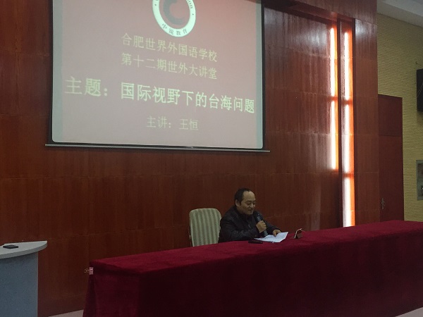 11月28日下午五点,我校第十二期世外大讲堂精彩开讲。本期由我校高中部语文老师王恒老师主讲《国际视野下的台海问题》。