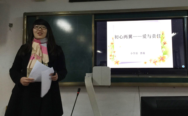 “爱”是责任的体现,而“责任”是爱的化身。“爱”与“责任”二者密不可分。12月29日,小学部举行主题为“做一个有爱心有责任心的教师”的师德演讲。