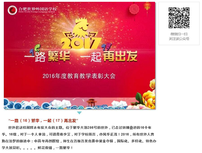 【一路繁华 一起再出发】世外隆重举行2016年度教育教学表彰大会