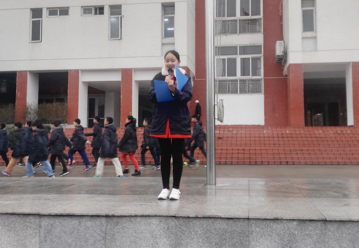 2月20日上午9:30,学生们在熟悉的音乐声中精神抖擞的来到礼仪广场,排着整齐的队伍准备升旗仪式的开始。