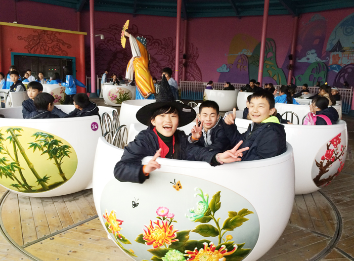 在万达主题乐园里,同学们放松心情,尽情玩耍。各种大型游乐项目,给大家带来了惊险刺激;徽派文化精髓与现代尖端科技的完美结合,也使得孩子们沉醉其中;还有那荟萃世界各地的美食精选、玲琅满目的精美商品和别具风情的节目表演……使人心旷神怡。同学们乐而忘返,陶醉在欢乐的海洋中。