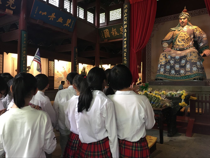 接下来,同学们来到了岳王庙。岳飞精忠报国的精神深深地感染了每一位同学,也为他最后绝笔“天日昭昭”不连的扼腕叹息。