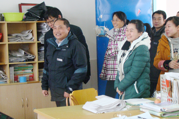 党支部书记、校长邵忠德带领校长班子、党支部及工会成员到各个处室团拜