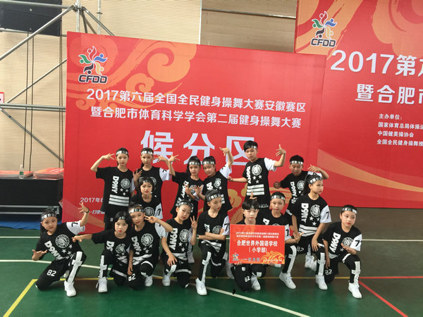 六月四日下午,我校小学部健美操社团的同学们在教练的带领下,参加了在安粮学院举办的2017年全国全民健身操舞大赛安徽赛区的比赛,并摘得了小学混合组一等奖的桂冠。