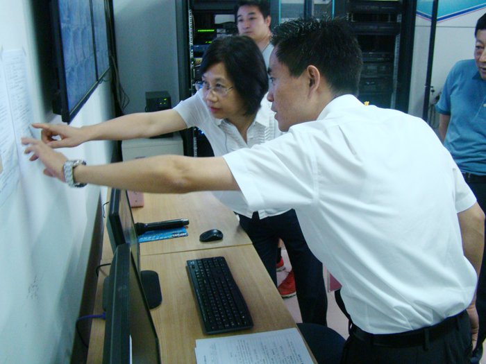 吴春梅一行现场查看了考点视频监控系统、试卷保密柜、试卷分发室和英语听力播放设备等考务设施,详细了解了英语听力播放设备的运行情况和操作人员培训情况,听取考点考前准备工作情况汇报。