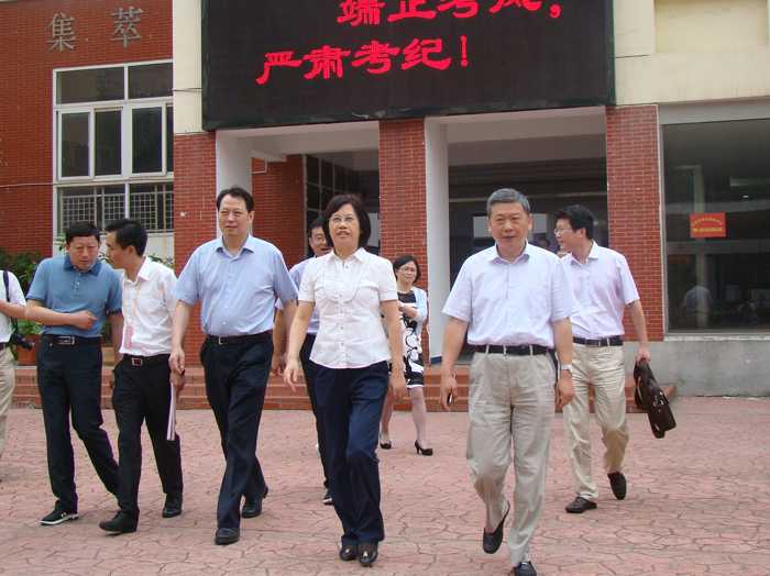6月13日上午,市招委主任、市政府副市长吴春梅,带领市教育、公安、城管、卫生、环保、保密、应急办等部门负责人来到合肥世界外国语学校考点检查中考准备工作情况。