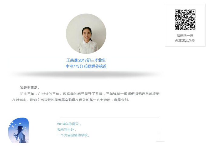 【2017世外中考记忆】王茜潮:青春征途 星辰大海