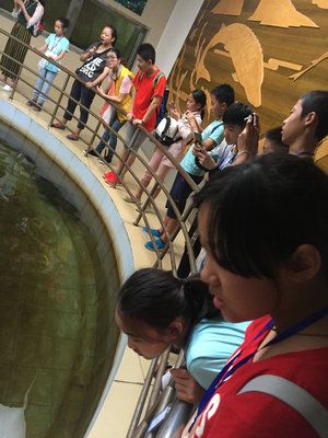 吃过中饭后,我们坐大巴来到了位于宜昌的中华鲟园。这里分为多个不同的场馆,包括鲟鱼馆、标本馆、鳄鱼馆、热带鱼馆、水族长廊、展览厅和将要对外开放的生产养殖车间。在这里我们欣赏到了享有“水中大熊猫”美誉的各种规格中华鲟,以及多达上十个品种的世界各国鲟鱼,而且看到了扬子鳄、湾鳄、胭脂鱼和种类繁多的热带鱼及长江名特鱼类。真是丰富了我们的知识储备,也让我们感到自然的神奇。