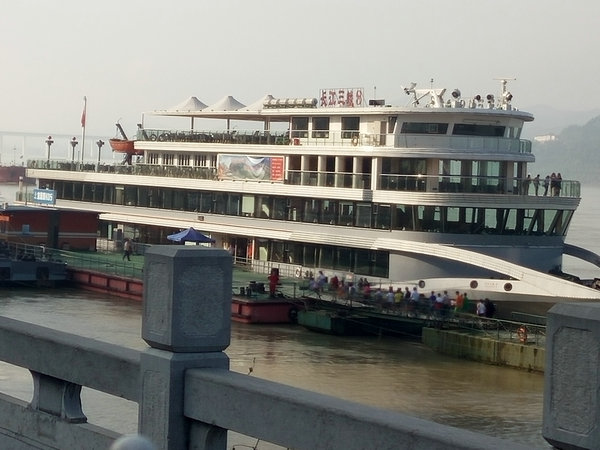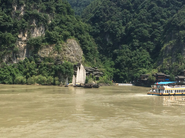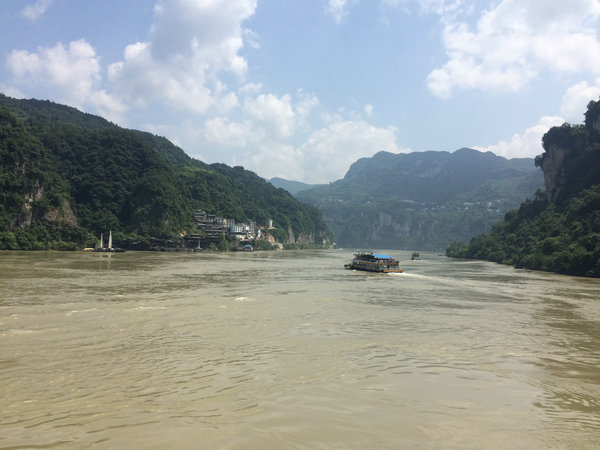 三峡位于湖北省宜昌市境内,它是瞿塘峡、巫峡、西陵峡三段峡谷的总称。早上8点,我们乘坐精品豪华游轮——“长江三峡8”号,开始了我们的船赏之旅。首先映入眼帘是夷陵长江大桥,举目远眺,高耸的倒“Y”型三大桥塔巍然屹立,直插蓝天,如同三个大写的巨形“人”字撑起江天。随后我的游船进入了万里长江第一坝——葛洲坝。当游轮驶至葛洲坝单线船闸时,同学们都体验了一次水涨船高的独特感受。船过葛洲坝船闸,进入了长江三峡中最长的一个峡谷——西陵峡。初来三峡的孩子们仿佛注了兴奋剂,他们畅游在美丽的峡谷中,一路拍照,一路惊叹。