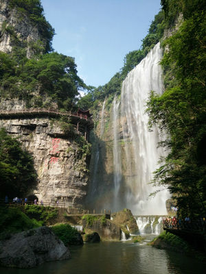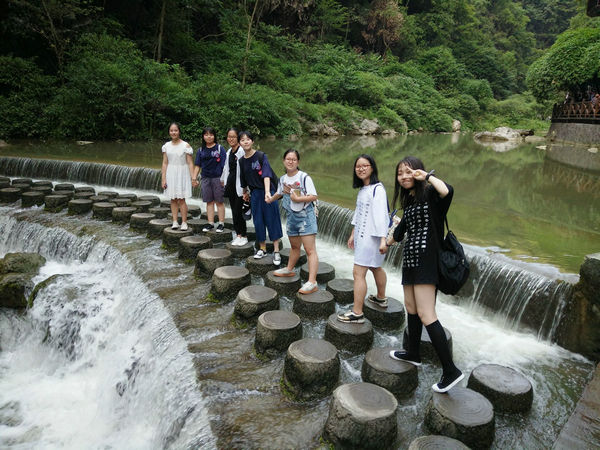 活动第一天,跟随夏令营导师参观有“华中第一瀑”之称的三峡大瀑布,景区是“鄂西生态文化旅游圈”精品景区,是展示震旦纪,奥陶纪,寒武纪等多个地质年代的天然地质博物馆,三峡大瀑布主瀑高102米,宽80米,被广大游客誉为“华中第一瀑”,是全国独一无二的穿越型瀑布,漫天雨雾倾泻在眼前,奔腾水声叫嚣在耳畔,同学们真如勇士般在瀑布中激流跃进,穿过水重重,又可见新天地,以另个视角重观大瀑布,空气中弥漫着雨后夏日独有的清冽,一呼一吸间全是清润。