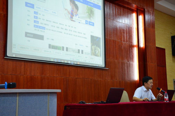 随后,邀请合肥市教育局王益华老师为大家作《应用至上 平行发展 整体推进》的报告。王老师与在座老师们分享了合肥教育信息化成果,展示了“教育云平台”的资源优势,倡导老师们共同思考在全球大数据时代背景下,如何巧妙应用以促进教育信息化的可持续发展。以应用为导向,力求区域联动,整体推进,打造学校为主阵地,构建智慧课堂,建设特色教室,深化应用,达到融合创新的目的。最后,王老师对大家作了合肥市教育云平台的简短培训。他的讲话深入浅出、细致入微,鼓励各位老师们紧跟教育信息化发展的时代步伐,老师们认真聆听做笔记,受益匪浅。