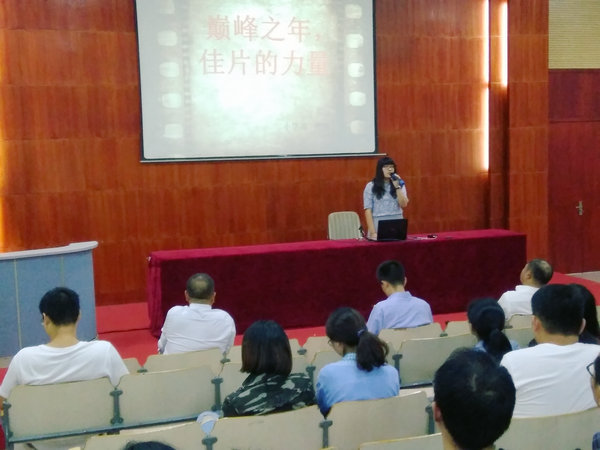 9月25日下午17时,全体教师于阶梯教室举行了第十六期世外大讲堂暨全校教职工大会。本次世外大讲堂的演讲主题是《巅峰之年,佳片的力量》,主讲人是小学部语文教师曹薇。作为一名年轻的班主任兼语文老师,在工作中,她兢兢业业、恪尽职守,对学生春风化雨般的熏陶,滋润着孩子们天真敏感的心灵。在工作之余,她还是一名资深的电影发烧友。在今天的大讲堂上,她与在座的各位同仁们共同回忆电影的巅峰之年即1994年国际影坛所呈现给观众们的视觉盛宴,及它们所承载的鼓舞人心的精神力量。曹薇老师的讲座以真挚的情感体验为主基调,撷取各部佳片的经典桥段,灌注于自己的独特情感体验并加以深度思索,对影片内涵的深度解剖赋予了自我的理解。影片中人物之间的对话简短且发人深省,一个个不甘于向困难妥协、不愿意屈服于命运安排的人物形象这么多年来深深地烙印在观众们的心中。如以阿甘、安迪为代表的人物形象就体现了对人格自由平等的追求,对成功的渴望,对美好生活的无限追求。曹薇老师以电影佳片为媒介传递了一股正能量,一种积极乐观、为追求理想锲而不舍的人生观价值观。