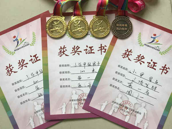 在本届经开区中小学生运动会上,我校运动健儿为学校拿下无数奖牌和荣誉,他们是合肥世界外国语学校的活名片。我校张开创同学获得男子100米金牌、周一同学获得男子三项全能金牌(100米、跳高、铅球)、彭立斌同学获得男子跳远金牌、姚志轩同学获得男子400米铜牌、李天龙子同学获得男子200米铜牌、其余同学均进入各项目的前六名,为学校赢得荣誉。