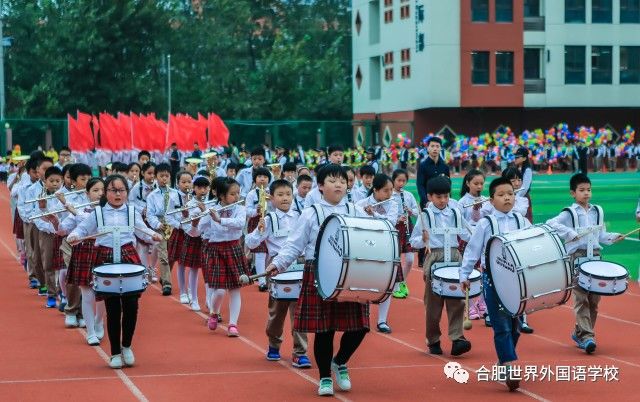 军乐团、国旗、花环、红扇、气球……一个个方阵各具特色,步伐矫健,展现着世外学子良好的精神面貌!