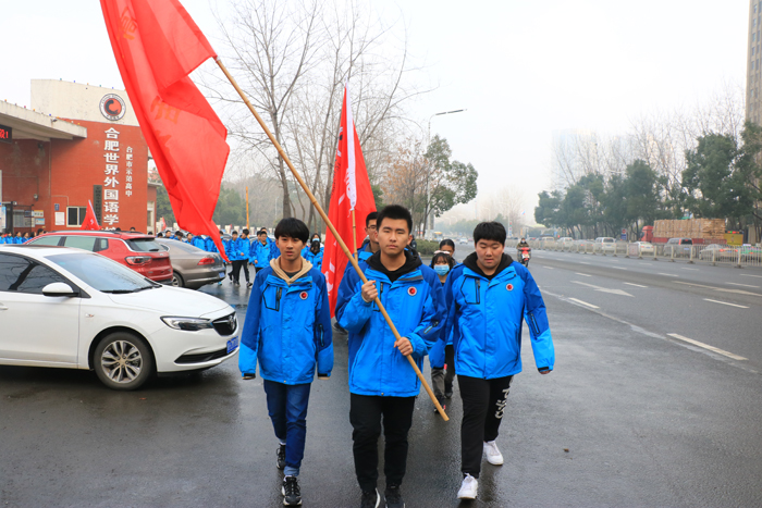 2018年1月17日下午,合肥世界外国语学校一年一度的远足活动即将待发,积雪未消的路面上依然透着刺骨的寒气,这时校园的广场上响起了高昂的呐喊声,没错!那正是世外学子们正为即将到来的远足而宣誓,从他们的嗓音中,可以感受到世外学子们的激情澎湃和生机勃勃的向上精神。