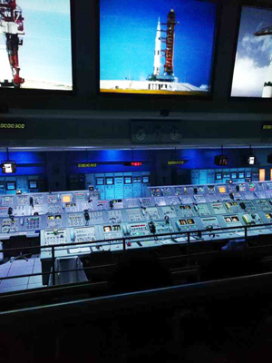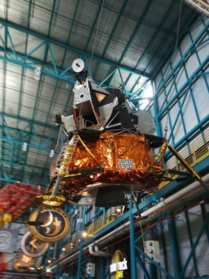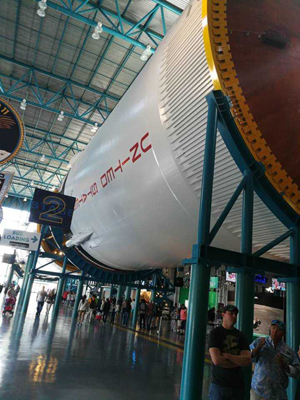 观光大巴随后把我们运送到阿波罗-土星5号中心。到了中心我们先用午餐。这个中心是一个存放着一个重造的土星5号火箭和其它展览品的大博物馆。我们看到了巨大的火箭,着陆飞船,还看到了月球车。