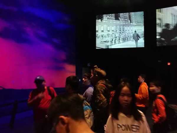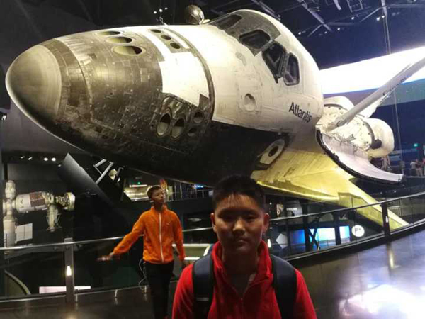 下午先后到两个展示中心观看了两段美国历史的两大航空项目的映像。第一段是美国为什么开启阿波罗计划和计划整个实施过程。第二段我们参观了美国航天飞机计划。我们见到了亚特兰蒂斯号航天飞机的实物,通过映像资料我们了解了整个航天飞机的发展史。同学们都感叹人类在征服太空付出的艰辛和伟大。