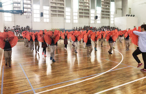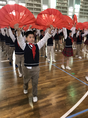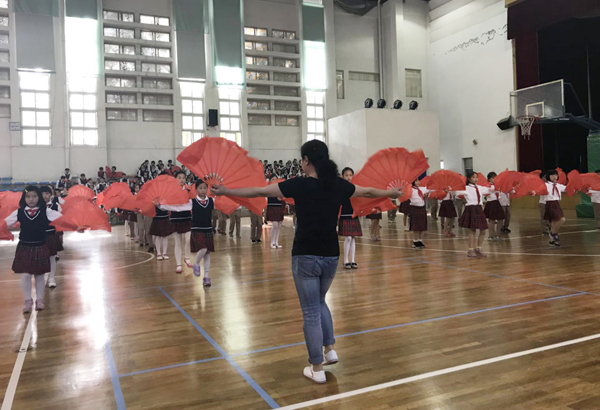 其次进行的是红扇操比赛,在歌曲“阳光下的少年”伴奏中,师生整齐划一的招式,震撼的开扇声,有韵律的身姿……同时各班发挥创意,在节奏中编排队形,展示特色,让红扇绽放出五彩光芒。