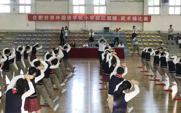 为了弘扬中华武术,不断培养我们的竞争、协作精神和集体荣誉感,促进素质教育的全面发展,为了进一步促进大课间两操质量。5月9日下午大课间活动时间,世界外国语学校小学部四、五年级成功举行了“阳光下的少年”“旭日东升”小学生红扇操和武术操比赛。