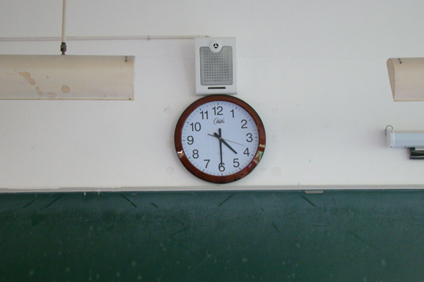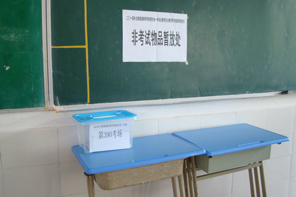 镜头二:为保证考试公平,每间教室都配有视频监控设施;墙面、黑板上的文字全部清理干净;教室内设有非考试物品存放处;教室、播音室、大门口都悬挂有电波钟,时间毫秒不差。