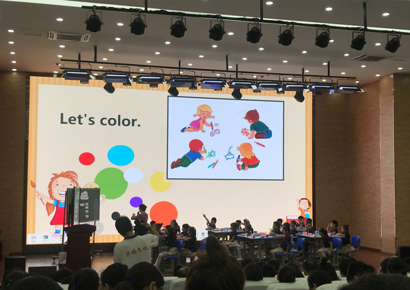 一开始由孟芬老师和吴清华老师分别带来的绘本与课本融合的展示课,两位老师的课堂生动活泼,富有感染力,坚持课堂始终以学生为中心,激发了学生主动探索语言的兴趣,并且与老师始终保持了互动的过程。另外老师们充分地运用了多媒体这些现代化工具,以鲜艳的色彩活动的图像和有声的对话让学生表现出了浓厚的学习兴趣和很高的积极性,创造了一个轻松愉快的学习氛围。