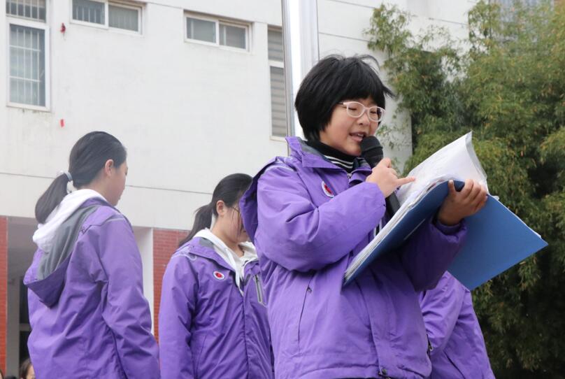 本次升旗仪式由初中部七(6)班、七(7)班主持,这是两个以年华为笔,以汗水为墨,从一张张白纸上挥洒出红橙黄绿青蓝紫的世外菁英女子班。五十张来自内心的笑脸,热情洋溢,绚丽的季节里盛开出灿烂与光华。五十声来自心灵的呼喊,充满力度,恬淡的天空中可与雷声媲美。
