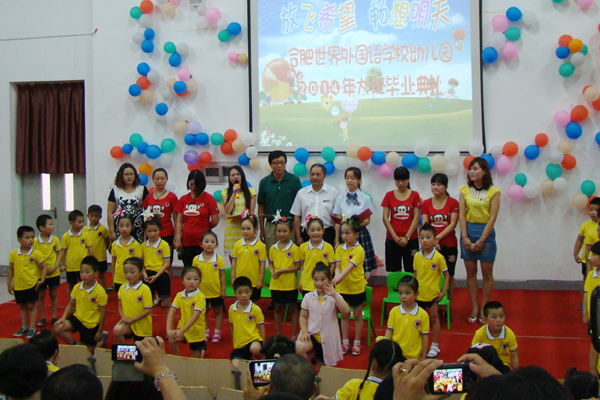2014年6月21日上午9:00,合肥世界外国语学校幼儿园的师生怀着欣慰、难舍、充满希望的心情,举行了隆重、热烈的大班毕业典礼。对于大班的小朋友来说这是极其难忘的一天,因为今天举行的毕业典礼,象征着孩子们在幼儿园的生活结束了,从此他们将要跨入小学的学习阶段。