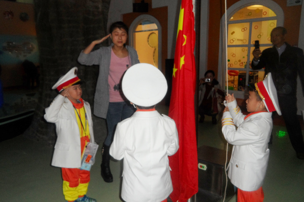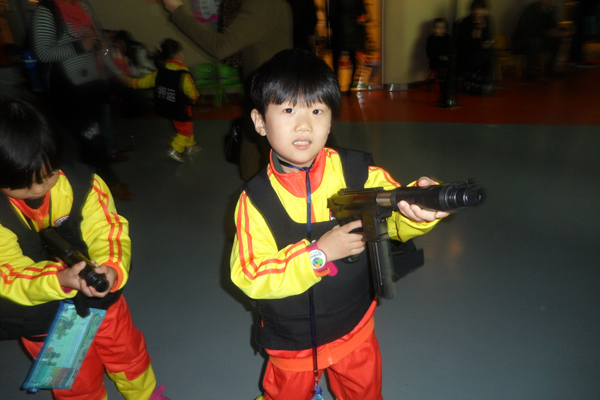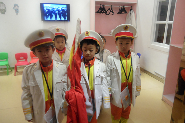 大概9:00左右,当车子刚到“宝贝地球村”门口,孩子们在车上就兴奋的欢呼起来。在导游阿姨的指引下,我们大一班幼儿和家长有序进入馆中。我们先来到了“乔治大街”集合,导游将幼儿集中分配到了“士兵突击”和“武装押运”两个馆。集中分配后幼儿就自己选择喜欢的职业体验馆:在毕老爷印刷馆里幼儿体验了身着古装,感受活字印刷古诗的雅趣;国旗护卫队的幼儿,在庄严的国歌声里享受了一次升旗手的自豪;在急救中心里,十几名小医生正在学习如何在紧急情况下快速救治他人;法院里,法官和陪审团正端坐在庄严的国徽下听辩护律师的陈词;身着宇航服的飞行员们正在模拟太空舱里玩转着方向盘;魔法屋里,几名小魔法师为自己成为“小刘谦”而骄傲不已!正在追捕小偷的小警察们;为扑灭大火而努力的小消防员们;身着绿色地球服的地球小卫士们……各种职业的身影在体验馆里享受着职业乐趣。