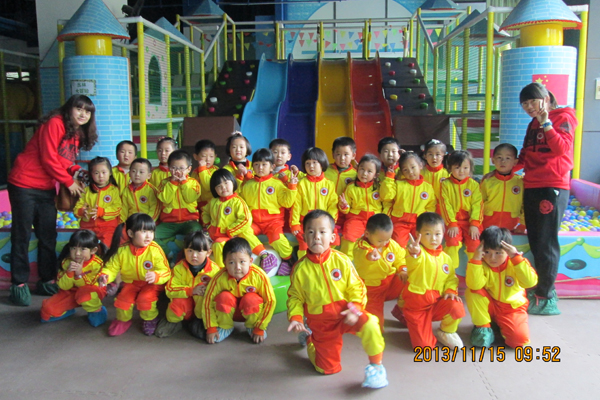 早上8点中一班一位教师负责接待家长,让家长进行签到。另一位教师及生活教师则负责组织幼儿吃早餐。8点20分,两位教师组织家长及幼儿在操场上开会。会后中一班两位教师组织好家长及幼儿乘坐大巴车来到了“宝贝地球村”。首先我们两个中班来到淘气堡,让幼儿在淘气堡进行玩耍,家长朋友在外观看,教师则给幼儿照相。在宝贝地球村中有很多儿童职业体验馆,儿童通过模拟和体验成人的职业和角色来了解和接触真实的世界。在这里,孩子们接触“社会”、了解“社会"、并成为“社会”的主人。在这里幼儿要自己学会等待,自己去排队,自己去进行游戏而不是去依靠自己的父母。在家长的陪伴下我们班的幼儿们都玩的非常开心。