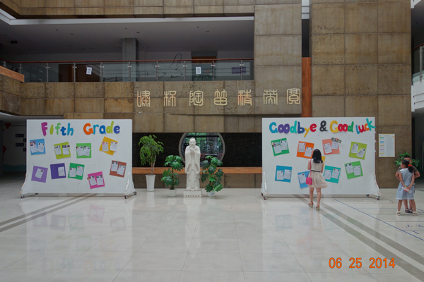 一进入校园,熙熙攘攘的家长和学生穿梭在校园各处(正值上海市期末考试结束后返校取成绩单期间),但是那股浓厚的中西合璧的文化气息丝毫不受影响,深深的吸引着我们步入行政楼大厅内。随处可见的英文谚语短句、学生们的英文作品、外籍教师的教育格言、校园活动安排、学期时间安排表……同时又被厚重的国学元素所包围着,当我们正感叹西外国际化办学的特色时,林敏校长——西外的创始人,热情接见了我们。