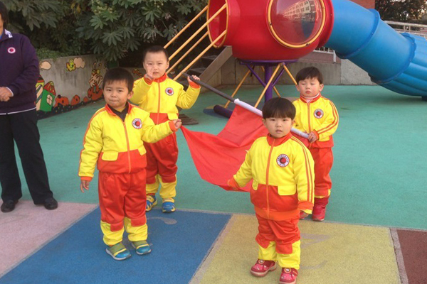 今天是2013年12月2日星期一,又迎来了合肥世界外国语学校幼儿园的升旗活动,早上10:00集合音乐准时响起,穿着整齐的各班孩子在老师们的带领下,整齐有序的排好了队伍等待着升旗仪式的到来……