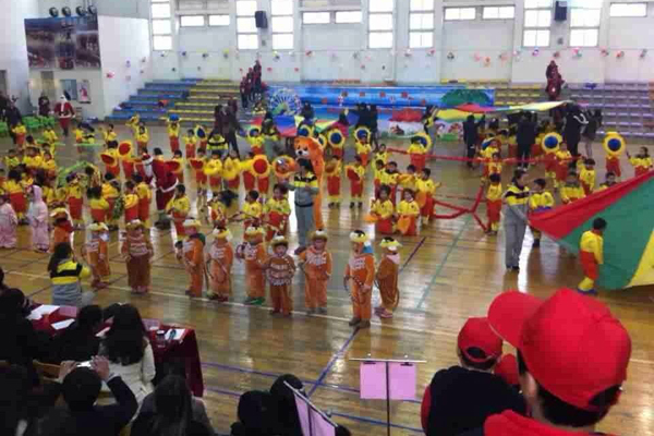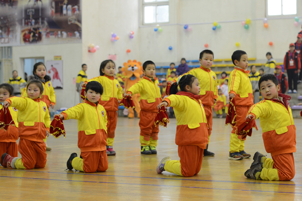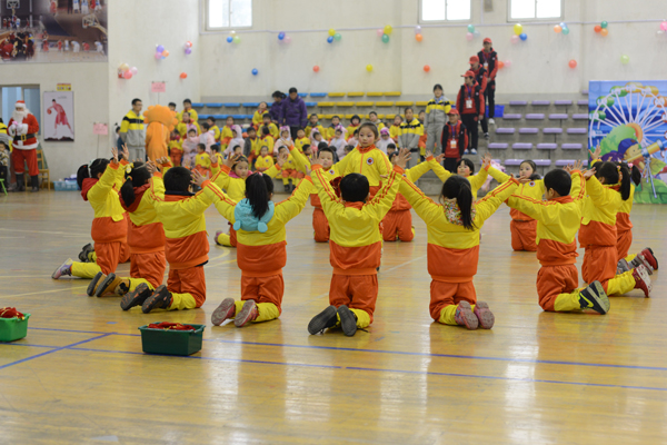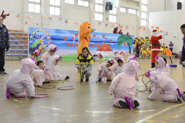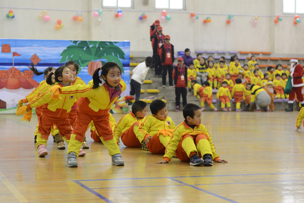 12月25号,合肥世界外国语学校幼儿园庆圣诞、迎元旦幼儿民间体育游戏展示活动在体育馆展开。