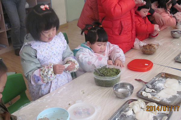 新年的钟声即将敲响,我班于1月17日下午组织了幼儿和家长共同参与的“迎新春包饺子”活动。活动前教师先向幼儿介绍了关于饺子的基本常识,让幼儿在了解了包饺子的简单方法后,在老师的指导下孩子们认真的包起了饺子,家长和小朋友一起动手包饺子,一起煮饺子,当一碗碗热腾腾的饺子端上来时,孩子们品尝着自己的劳动成果别提多高兴了。