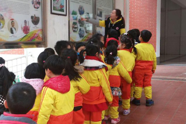 我们沿着小学部文化长廊一一向幼儿介绍小学生活,小学生上课时的情景,小学生活动时的纪律,包括他们户外活动的器械,孩子们好奇并认真的听着。我们带幼儿来到班级,看到每个班级墙面都非常有特色,一人一课桌,这一切对于孩子们非常新颖。特别是文化长廊里的艺术班;孩子们对各种乐器产生了浓厚兴趣。