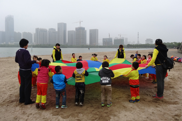 虽然早上出发的时候天气不是很好,但是依然阻挡不了我们出游的脚步。上午9:30两个小班的孩子在老师的带领及组织下有序的登上了大巴车。当我们来到目的地时,幼儿都显得异常兴奋。在老师的组织下,大家一起寻找春天。看到来来往往的游人,小朋友们还会主动和人打招呼。临近中午,我们让幼儿坐在铺好的彩虹伞上,大家在一起吃着午餐。午餐后,两个班的幼儿在沙滩上玩着彩虹伞,做着游戏。沙滩上留下了孩子们一串串的笑声。