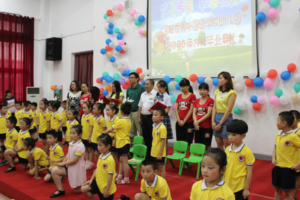 幼儿园:今天我们毕业今天是2014年6月21日,是小伙子在合肥世界外国语学校幼儿园毕业的日子,一家人都起得很早,把小伙子在7点前送到老师那里化妆和准备毕业汇演。