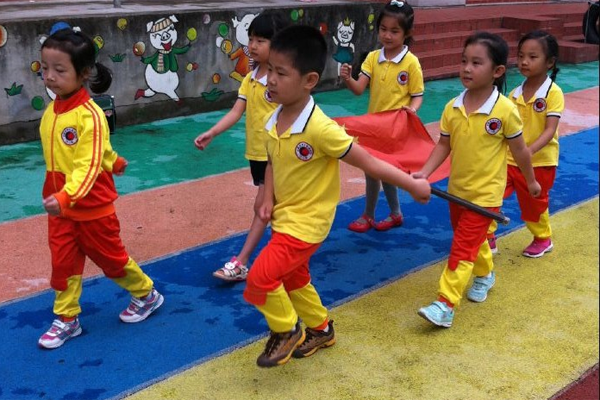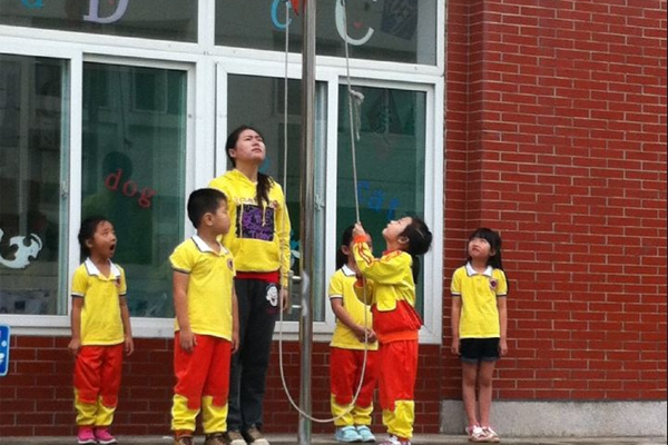 2014年9月15日上午,大一班小朋友举行了合肥世界外国语学校幼儿园本学期的第一次升旗仪式。全园小朋友在各班老师的带领下,踏着进行曲的节拍,精神抖擞地来到操场,兴奋地等待着升旗仪式的开始。