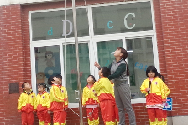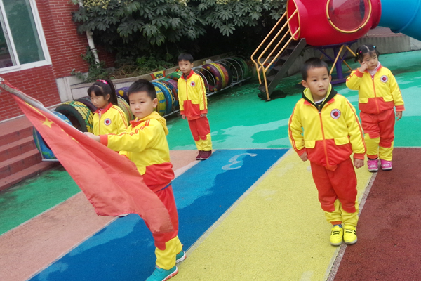 国旗迎风飘扬,昭示着合肥世界外国语学校幼儿园的孩子们在幸福的时代快乐健康的成长。