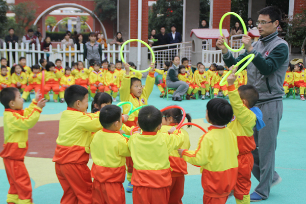 为了进一步强化幼儿锻炼身体的意识,激发幼儿积极参加体育活动的兴趣,2014年11月7日下午,合肥世界外国语学校幼儿园举行了幼儿早操评选活动,活动中不仅邀请了孩子们的父母前来参观。也邀请了一群特殊的客人:幼儿园家长义工。作为家长义工他们今天肩负着特殊的任务就是为全园幼儿早操评比活动担当评委,以及在活动期间帮幼儿拍照和秩序的维护。