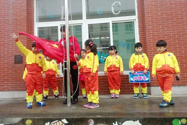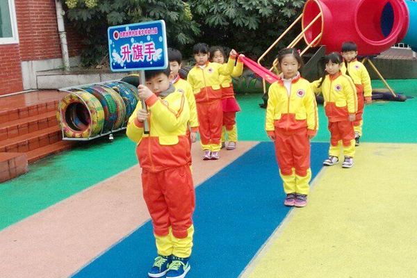 国旗迎风飘扬,昭示着合肥世界外国语学校幼儿园的孩子们在幸福的时代快乐健康的成长。