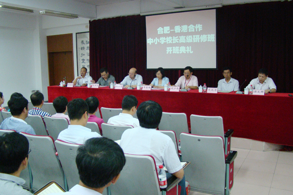 7月25日下午,合肥—香港合作中小学校长研修班开班典礼在我校隆重举行。合肥市副市长吴春梅、省外专局副局长黄河清、香港教育工作者联会副主席胡少伟,市教育局、市外专局的领导以及参加本次校长研修班的三十位合肥中小学校长参加了开班典礼。开班典礼由市外专局局长梁大群主持。