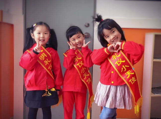 每天在幼儿入园之际,“文明礼仪小天使”们都会整整齐齐站在幼儿园门口。用专属于他们的热情饱满的童声,响亮而亲切的向自己的同伴、老师及家长们打招呼、问好。孩子们认真的态度,灿烂的笑容感染着所有来园的人们。