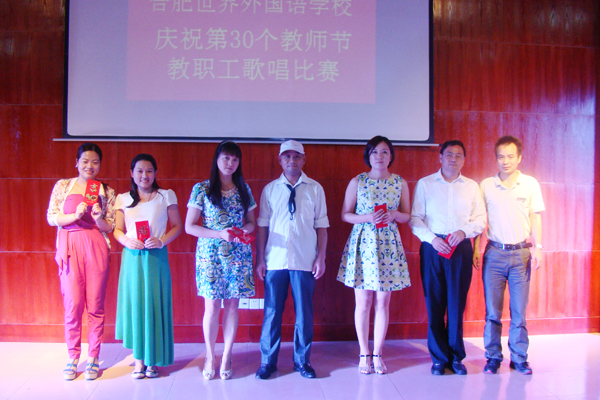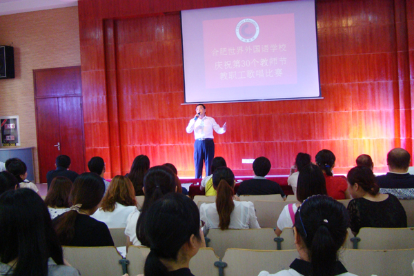 本次的教师节庆祝活动还特别设置了奖项,奖项共设两大类,分别是个人奖和集体奖。由学校音乐专业老师进行打分。在节目的尾声,我们更有幸欣赏到了我校小学部张大伟老师的专业歌唱表演,作为本次活动的表演嘉宾教师,张老师用他的专业水准令在场的老师们发自内心的折服,不息的掌声掀起了本次活动的又一高潮。这位曾在国家级舞台上荣获过无数奖项的师者,今天再次把辉煌奉送到了世外的舞台上。经过近两个小时的欢乐时光,教职工歌唱比赛在邵忠德校长的讲话中拉下了大幕,正如邵校在活动的尾声所说,快乐生活,开心工作,世外的明天将会更美好!
