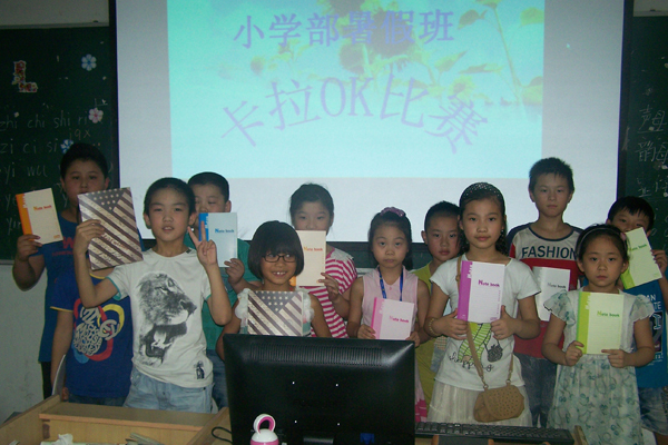 8月21日,下午三点半,小学部在多媒体教室组织了暑期班学生卡拉OK歌唱比赛。李晓燕老师简单说明比赛规则后,在同学们一阵热烈的掌声中,大赛的帷幕正式拉开。