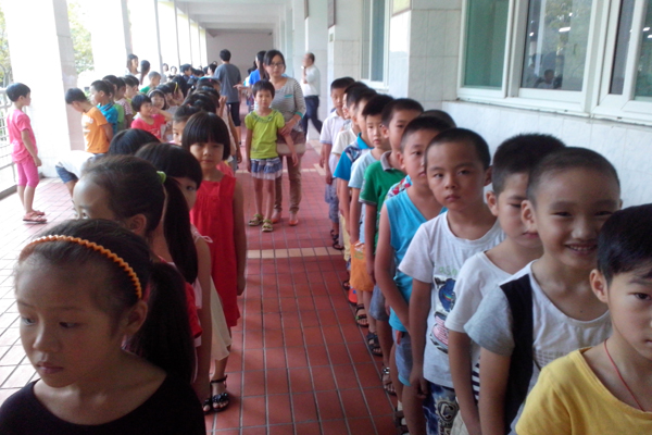 临近六点,晚餐时间到了。同学们走出教室排着整齐的队伍,在路队长的带领下,以班级为单位进入食堂就餐。饱餐后,依照惯例,由各班生活老师组织学生绕着校礼仪广场散步、聊天。两个月未见,孩子们总有说不完的新鲜话题。刚刚结束愉快放松的假期生活,有些同学的心理状态和作息时间尚未完全调整过来,这就需要老师们的及时引导和监督。因此,开学前一天晚上的“收心课”就显得尤为重要。晚上六点四十分,同学们有秩序地返回教学区,进入班级上晚自习。今晚全部由班主任老师进堂上课,主要是再次强调同学们对自我的学习生活的管理,布置新学期的各项任务,明确师生的奋斗目标,激发同学们学习的斗志和培养独立自理能力的勇气。课堂上,师生之间互动交流轻松融洽,收到了预期的效果。